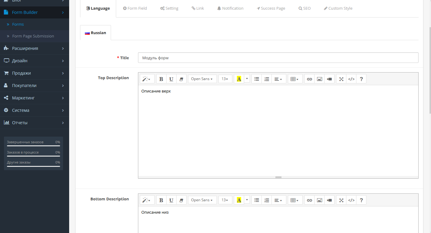 A flexible add-on for displaying feedback forms with custom fields at your discretion on any page of the online store. You can display forms on a separate page with an SEO description, SEO address title, and so on. The module is intuitive, there is nothing complicated, one minus the language is English, but it does not matter if you wish, you can translate.