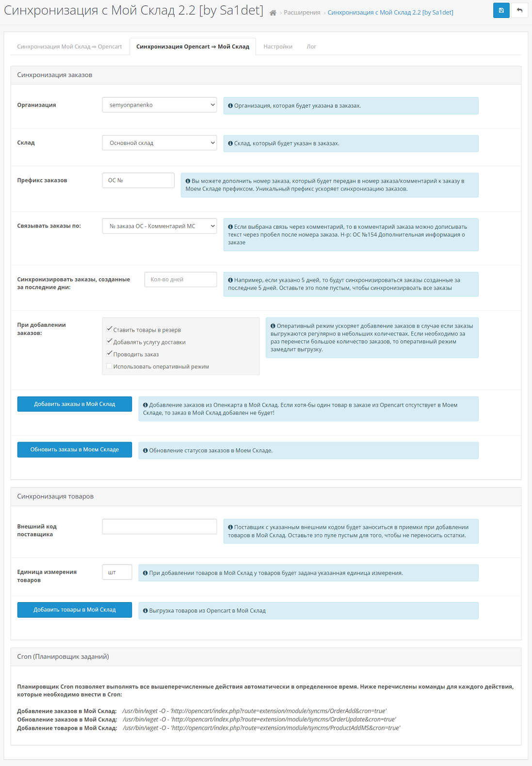 Module name in OpenCart, OcStore: Synchronization with My Warehouse