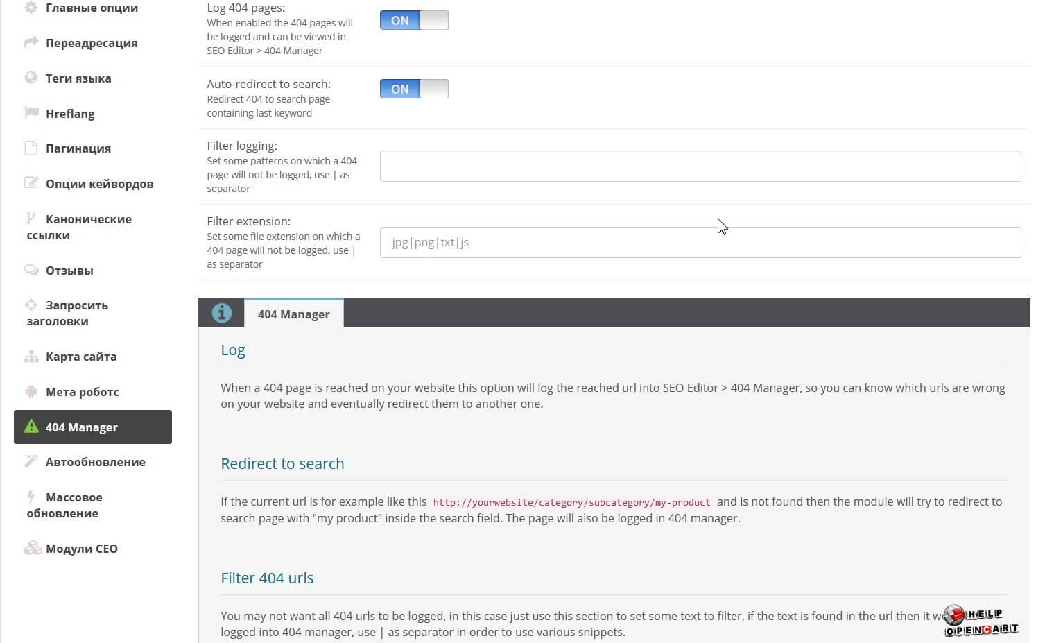 Особенность данного модуля в том, что его можно использовать без SEO PRO, Complete SEO создает перенаправление на каноническую веб-страницу и при этом вы можете сами задать количество путей в адресе страницы. Тем самым мы решаем проблему дублей страниц и народные методы OcStore и Seo pro уже в прошлом. Еще не маловажным является и редирект с недружественных сео адресов на ЧПУ. Еще модуль позволяет задать редиректы на https с www или без, а менеджер 404й страницы перенаправляет на поиск с записью в журнал ошибочного адреса, где вы можете сразу указать направление редиректа вручную.